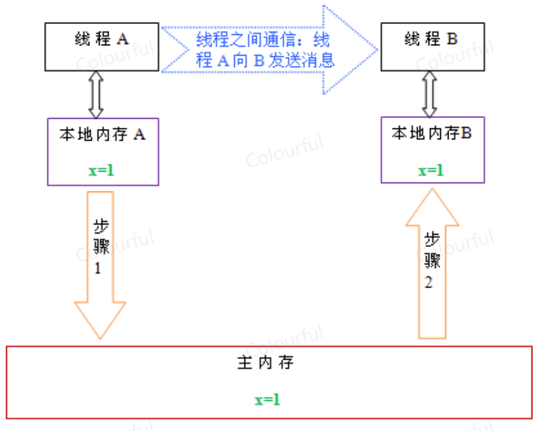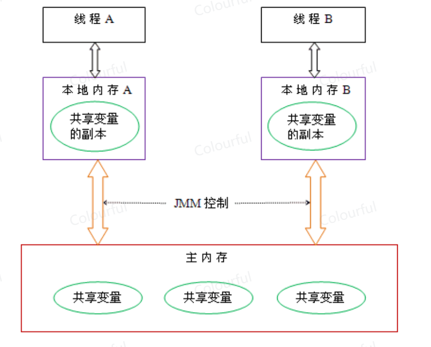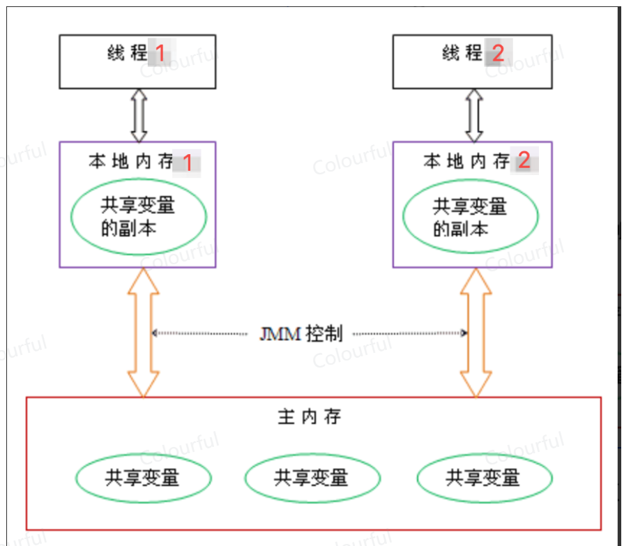 Java 的内存模型(JMM)中,每个线程有自己的工作内存(类似缓存),变量修改不会立即同步到主内存